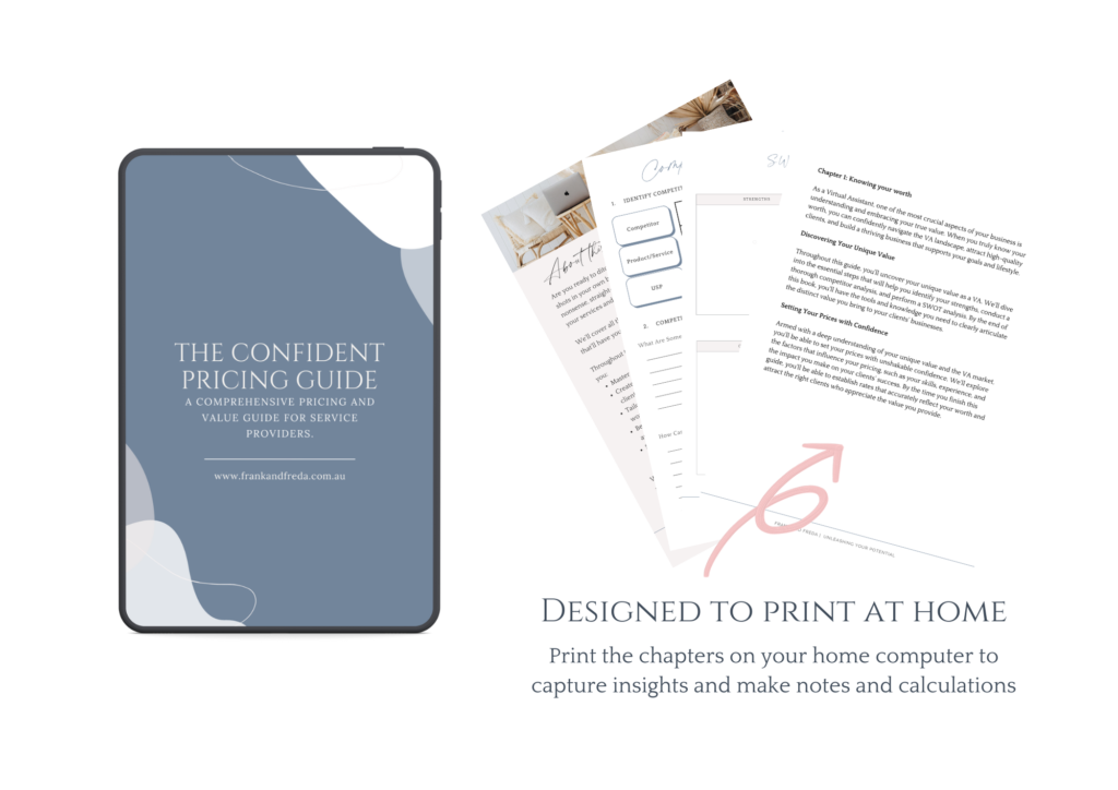 The Confident Pricing Guide is designed for service-based business owners who want to price with clarity and confidence. From calculating your hourly rate to crafting irresistible packages, this guide will help you set sustainable prices that reflect your value—without second-guessing yourself.